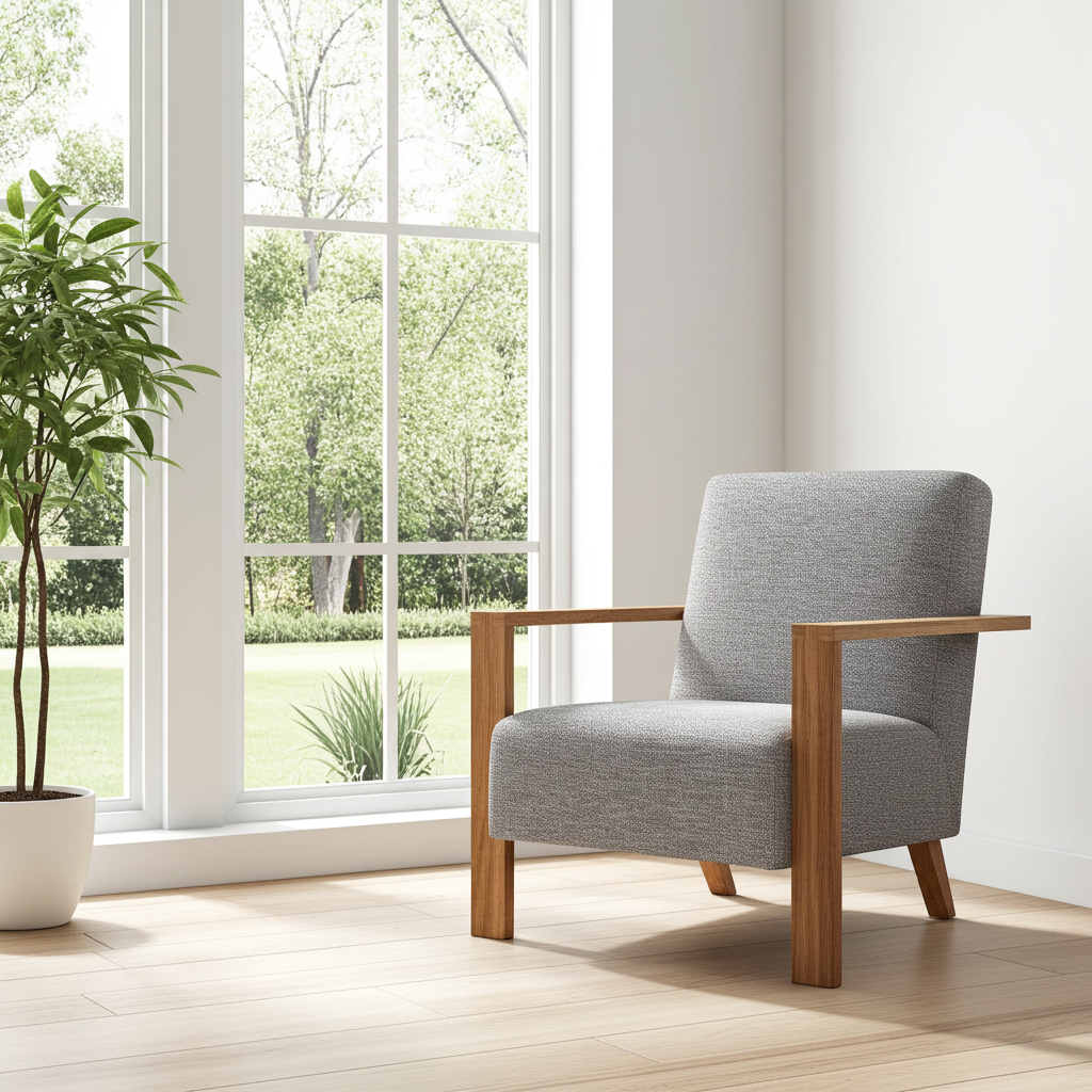 Easy chair with wooden or leather armrest